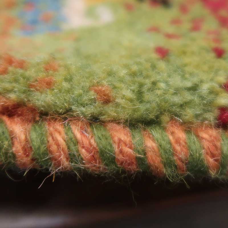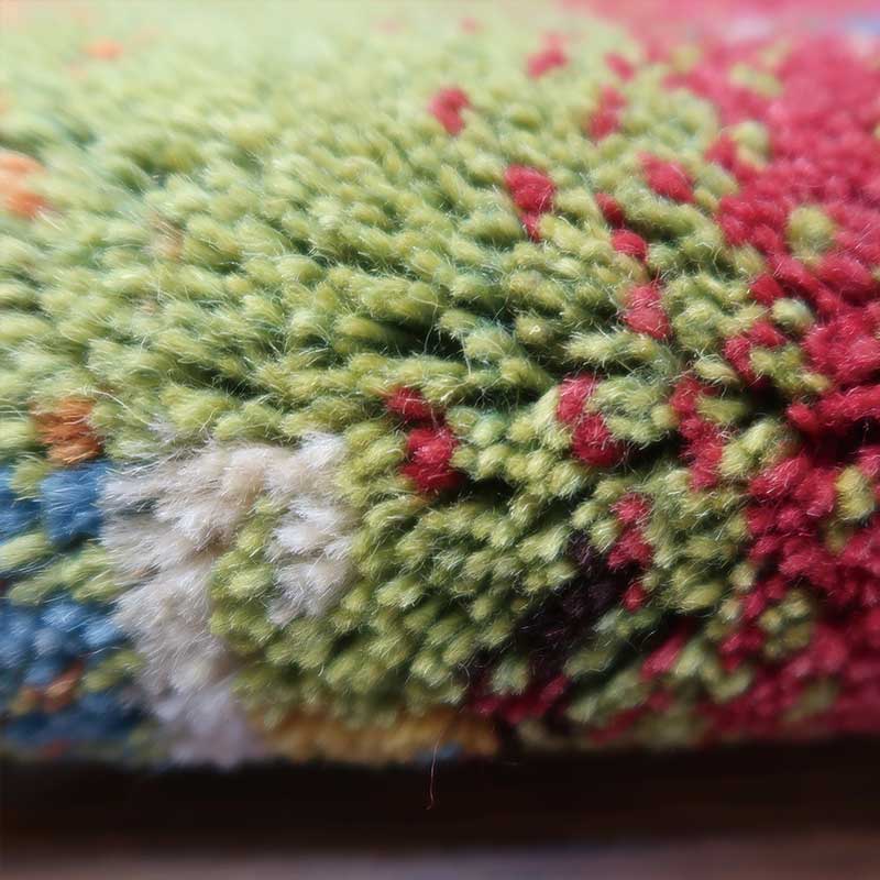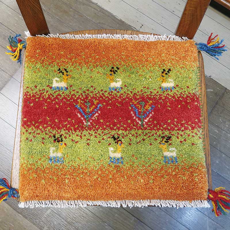 ペルシャ絨毯の中でも毛足が長いギャッペ(ギャベ)AB-PP23597。こちらのサイズは、ミニ座布団サイズで、ダイニングチェアや車のシートの上に敷いてお使いいただけるふかふかのギャッペ(ギャベ)絨毯です。
