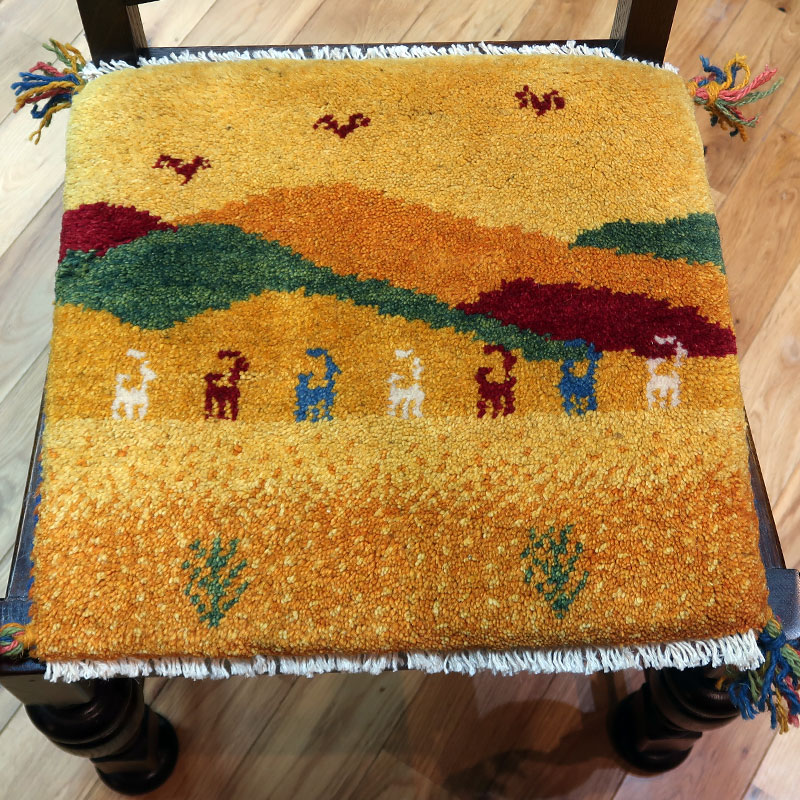 こちらのサイズは、ミニ座布団サイズで、ダイニングチェアや車のシートの上に敷いてお使いいただけるふかふかのギャッベ(ギャベ)絨毯です。