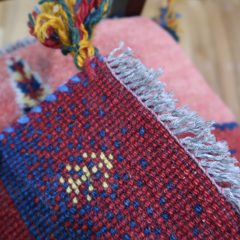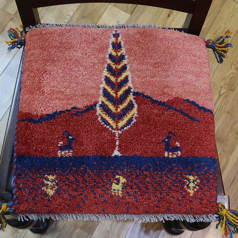 ペルシャ絨毯の中でも毛足が長いギャッベ(ギャベ)AB-T423。こちらのサイズは、ミニ座布団サイズで、ダイニングチェアや車のシートの上に敷いてお使いいただけるふかふかのギャッベ(ギャベ)絨毯です。
