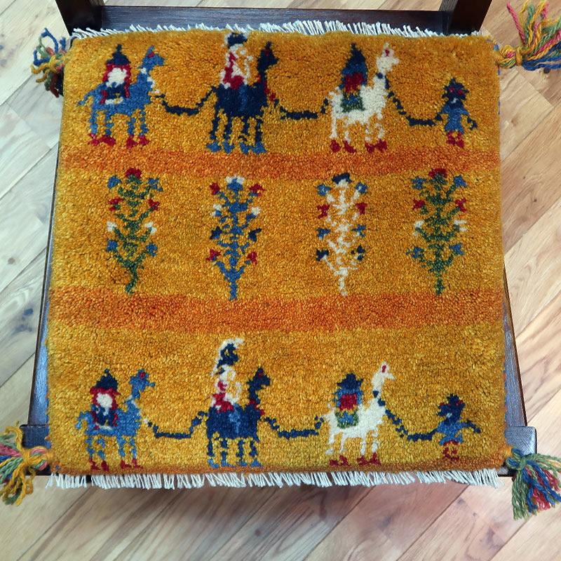 こちらのサイズは、ミニ座布団サイズで、ダイニングチェアや車のシートの上に敷いてお使いいただけるふかふかのギャッベ(ギャベ)絨毯です。