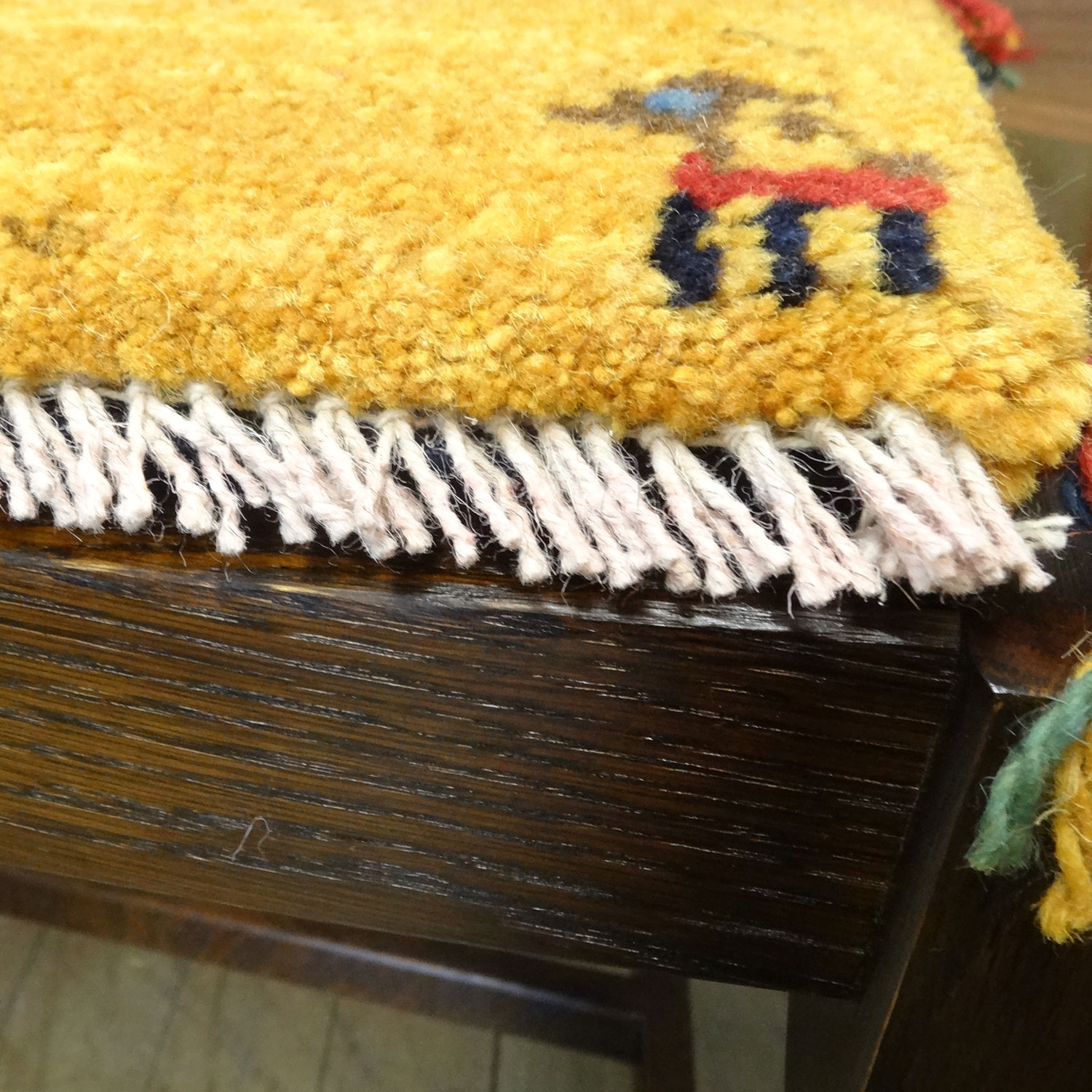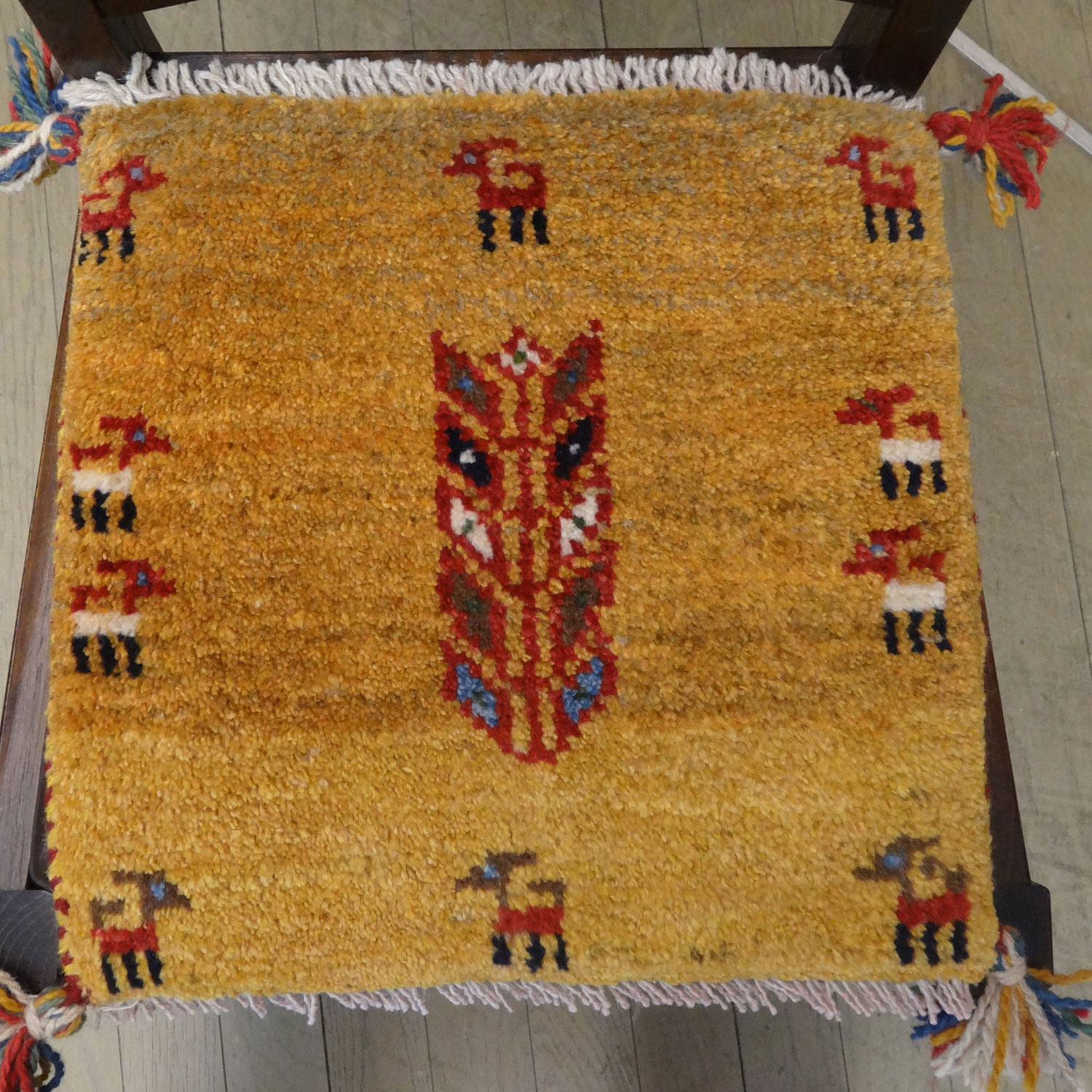 こちらのサイズは、ミニ座布団サイズで、ダイニングチェアや車のシートの上に敷いてお使いいただけるふかふかのギャッベ(ギャベ)絨毯です。