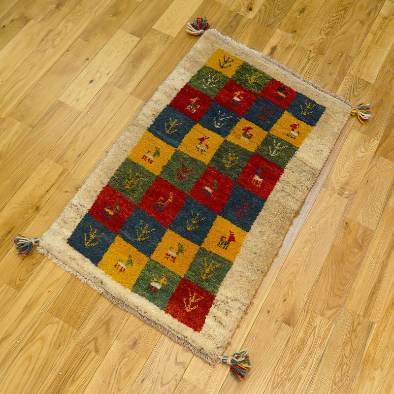 ペルシャ絨毯の中でも毛足が長いギャッベ、玄関マットサイズM-BB18788。