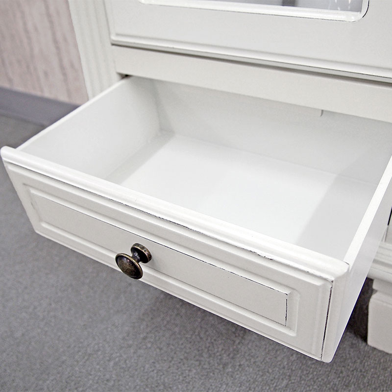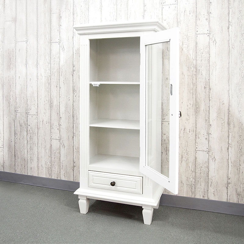ところどころに剥がし塗装を施したシャビーテイストな小ぶりで可愛らしいキャビネット。デュエットシリーズは、アイテムが、多数あるので、コーディネートもしやすいですね。また、海外工場での生産により、リーズナブルなのも魅力的です。
