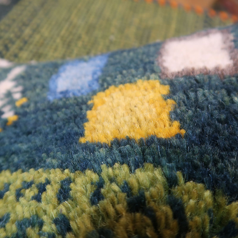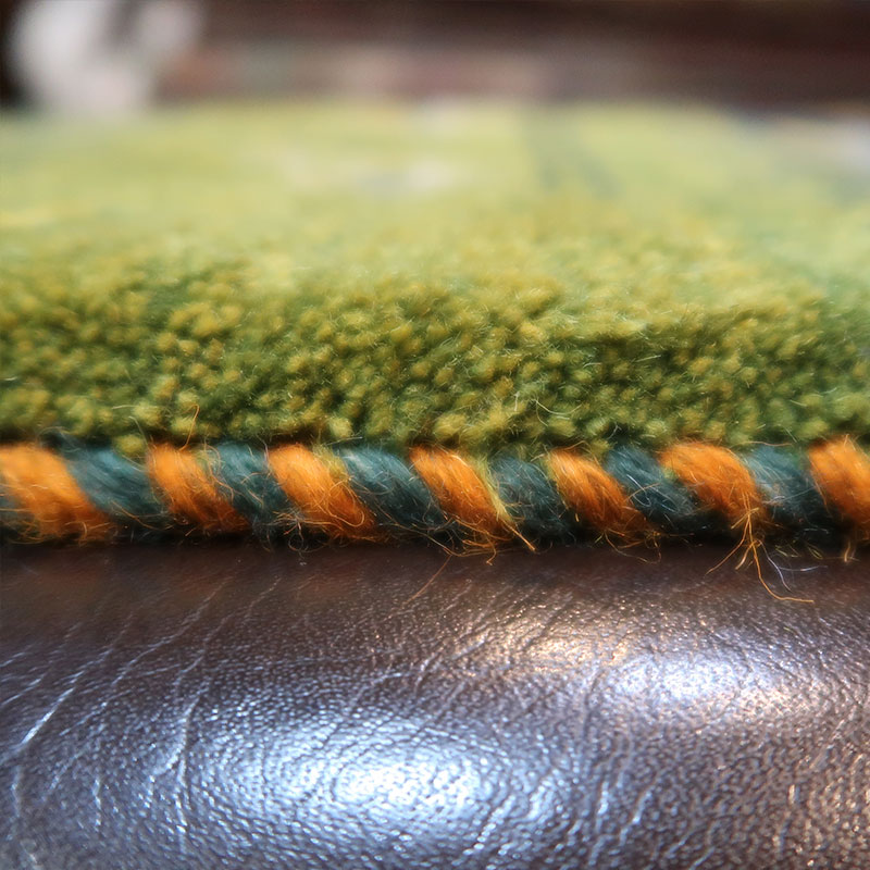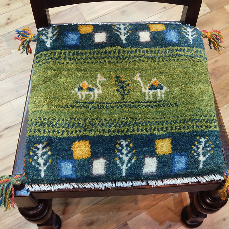 ペルシャ絨毯の中でも毛足が長いギャッベ(ギャベ)AB-T1287。こちらのサイズは、ミニ座布団サイズで、ダイニングチェアや車のシートの上に敷いてお使いいただけるふかふかのギャッベ(ギャベ)絨毯です。