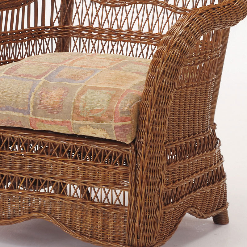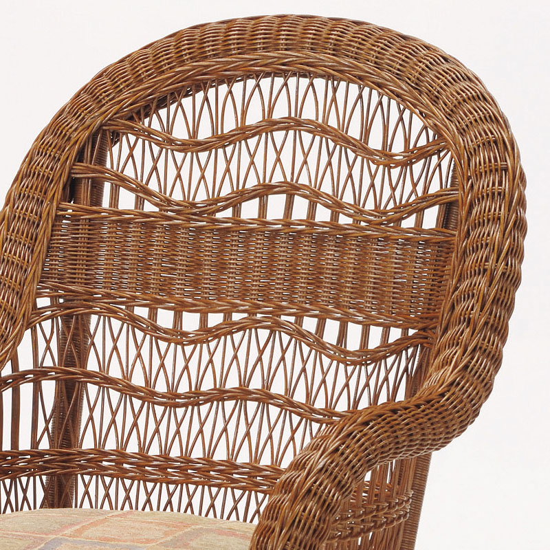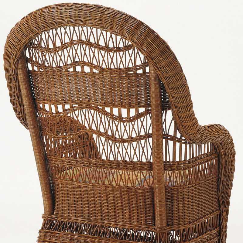 御姫様チックなラタンのアームチェアです。洋画に出て来そうなラタンのアームチェア。クッションは、豪華なジャガード織生地を使用しています。