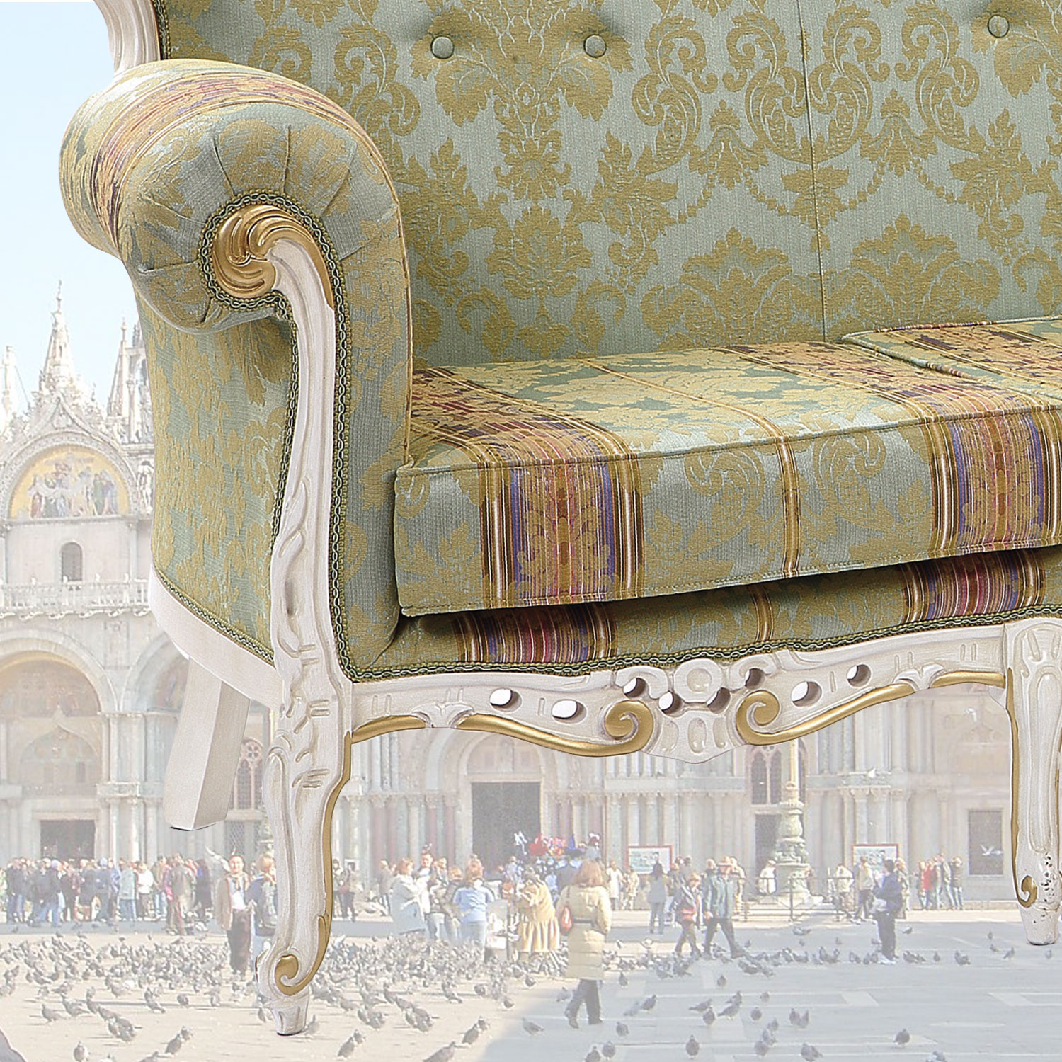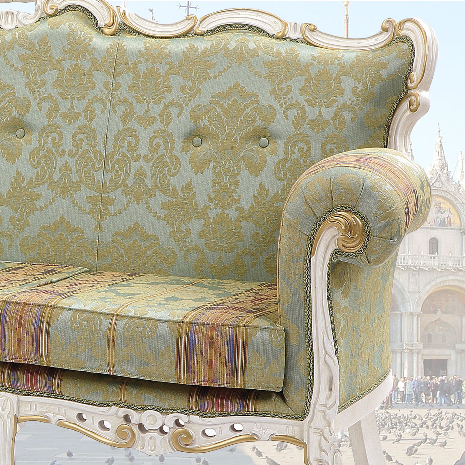 本場イタリア製、木目調ブラウンの伝統のあるイタリアクラシックデザインの三人掛けソファーです。。エレガントでスタイリッシュな彫刻と猫脚が魅力です。お部屋を豪華な気品のある雰囲気にしてくれます。