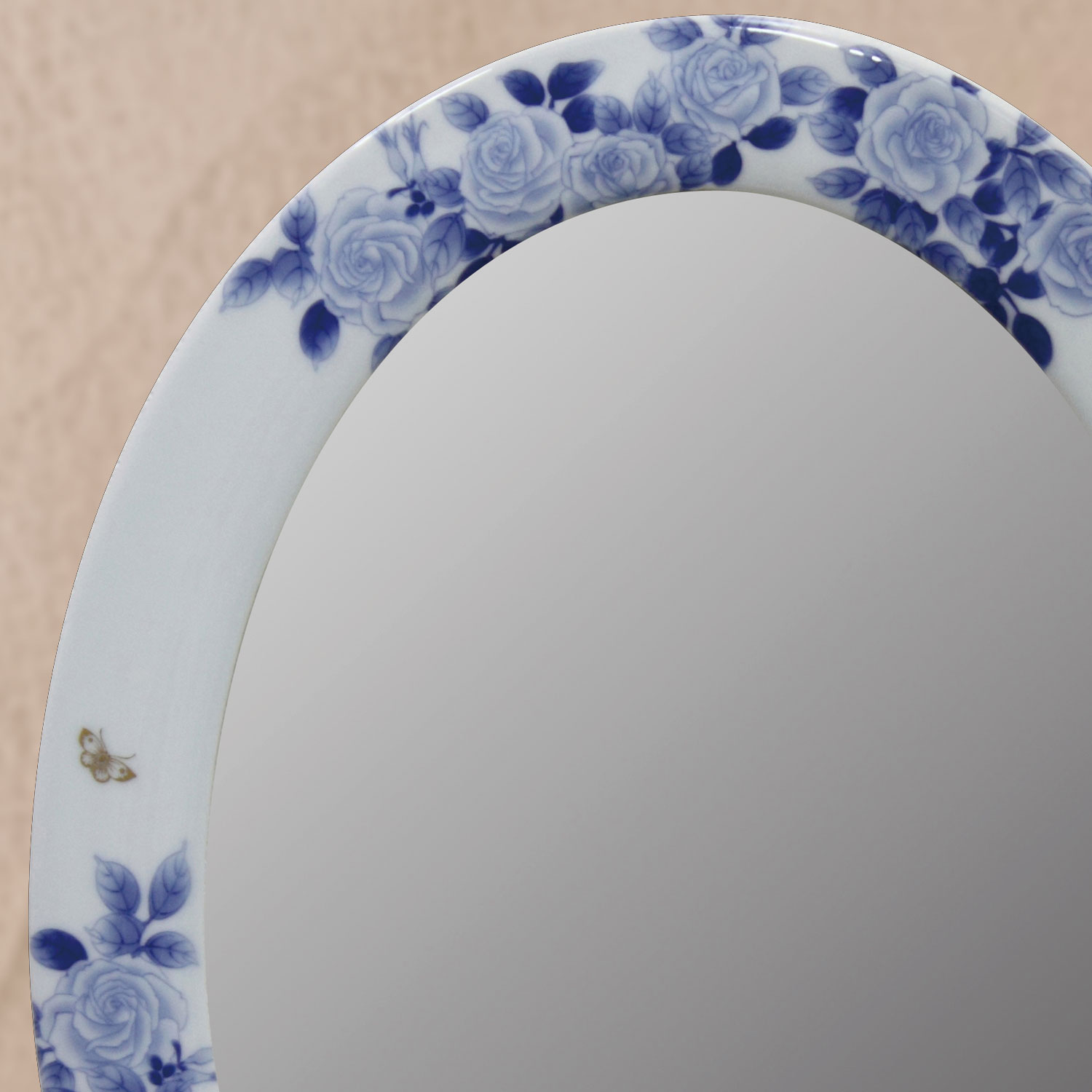有田焼のミラー(カガミ) 染付薔薇絵鏡