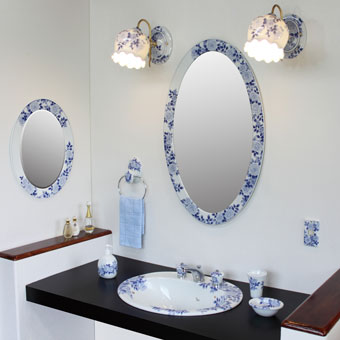 有田焼ブルーシリーズで統一感のあるサニタリーイメージです。