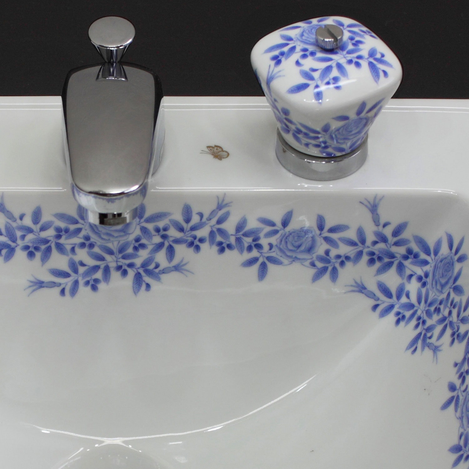 有田焼の楕円型洗面ボウル 染付薔薇絵楕円型