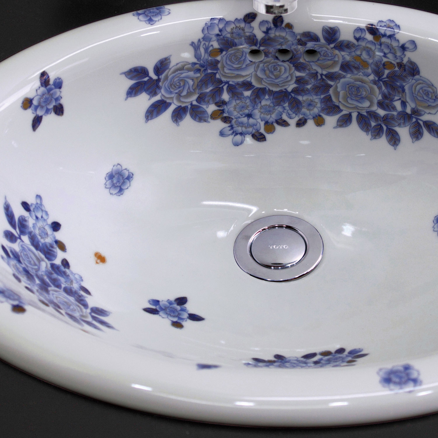 有田焼の斬新なデザインの楕円型洗面ボウルです。匠の技が光る逸品です。