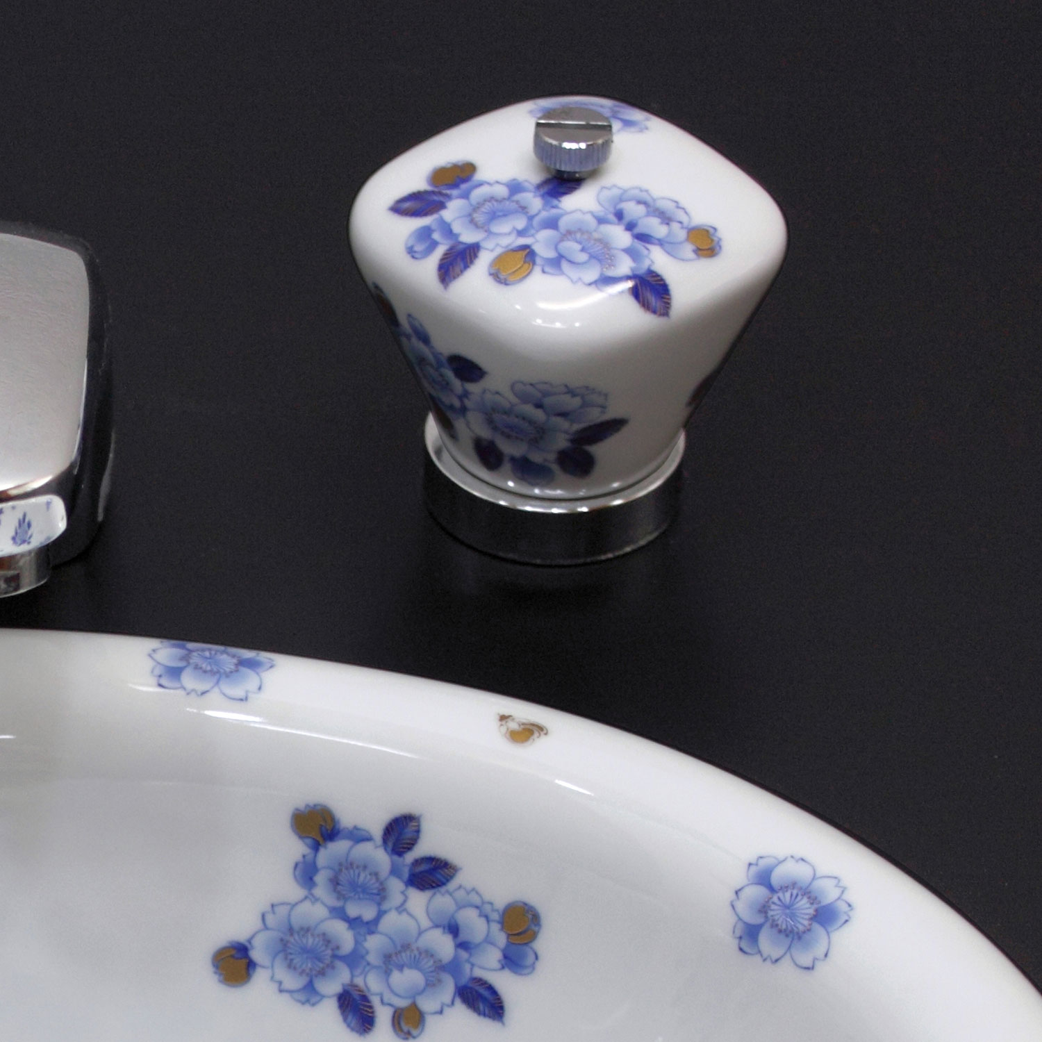 有田焼ブルーシリーズで統一感のあるサニタリーイメージです。