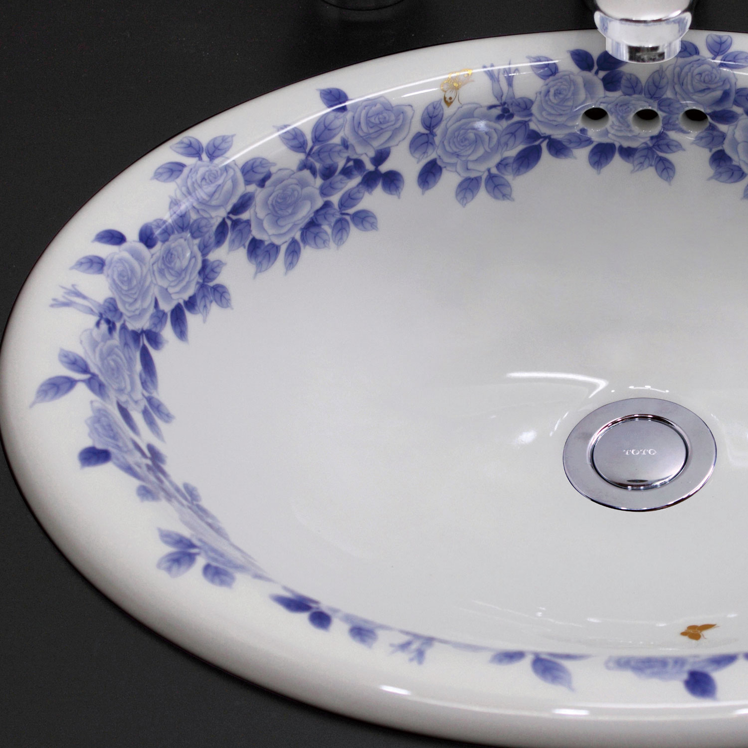 有田焼の斬新なデザインの楕円型洗面ボウルです。匠の技が光る逸品です。素敵な野薔薇の絵柄が、サニタリーを演出します。
