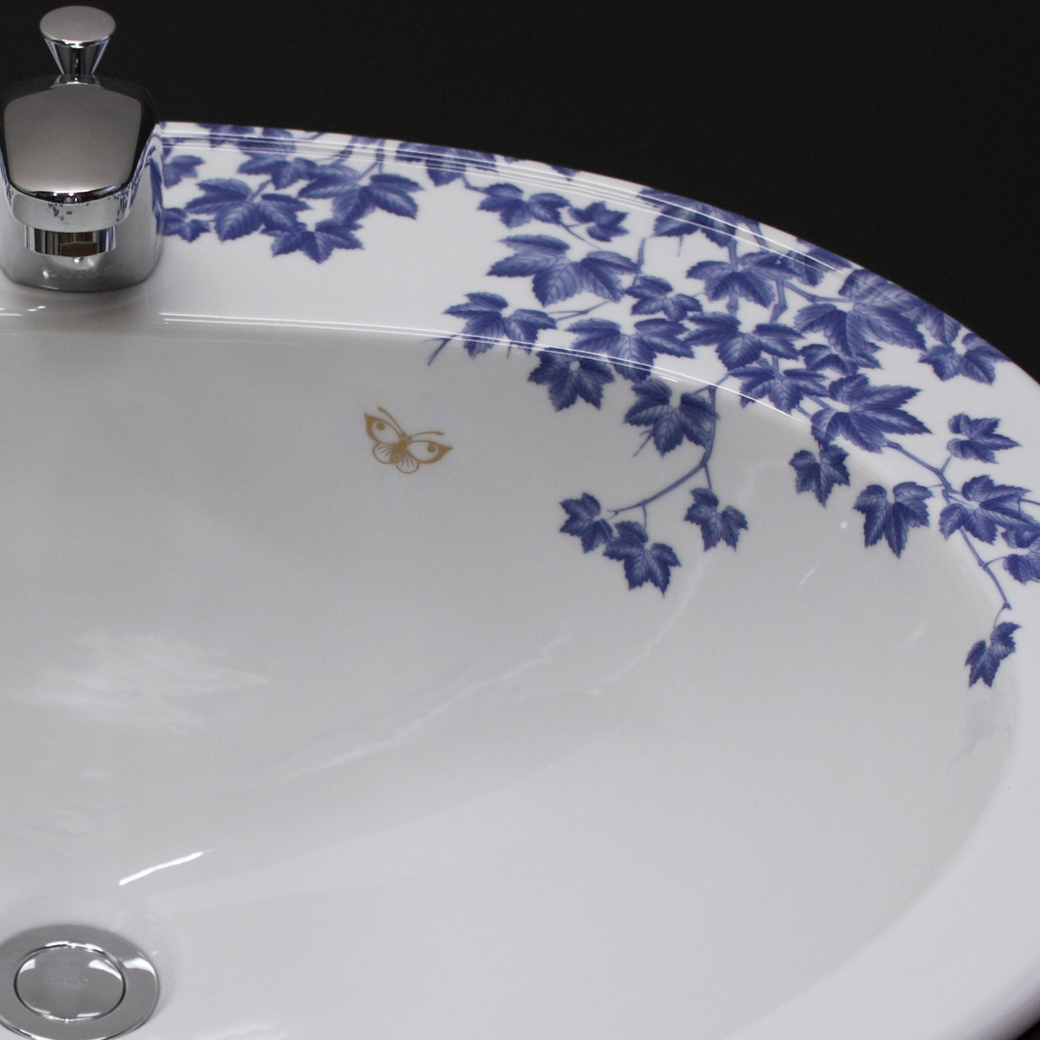 有田焼の楕円型洗面ボウル 600-染付ツタ絵楕円型