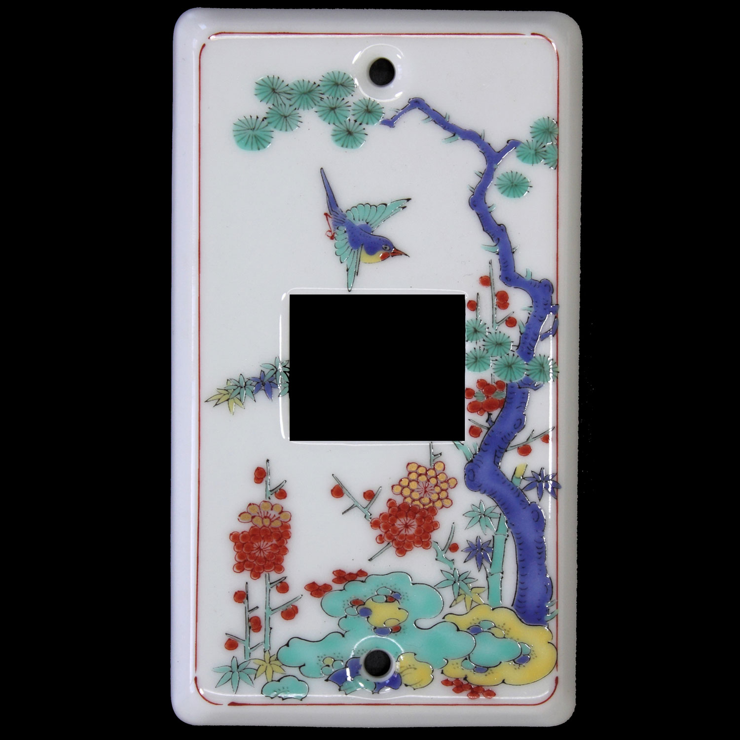 有田焼スイッチカバー(スイッチプレート) 1ツ穴 染錦グリーン外濃み