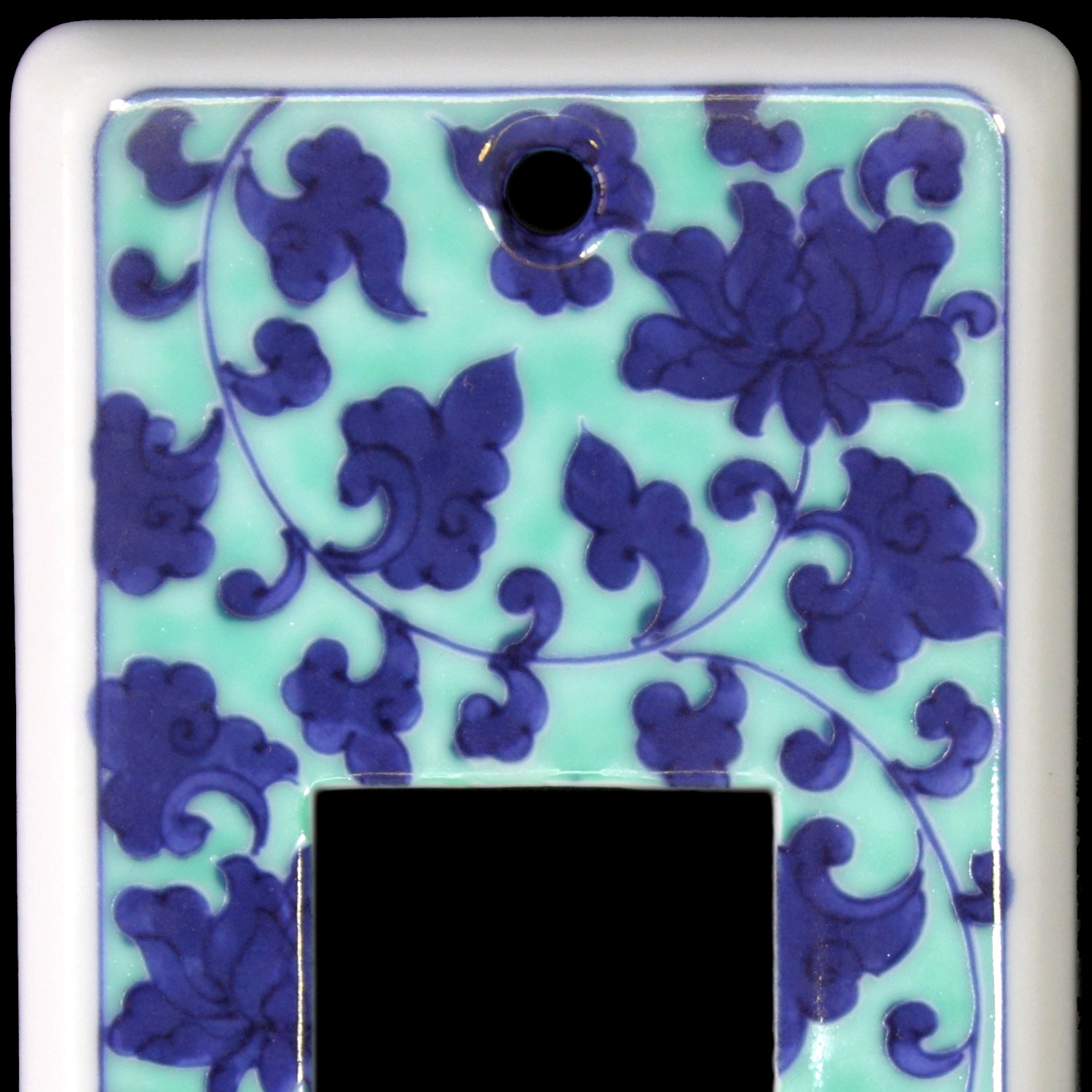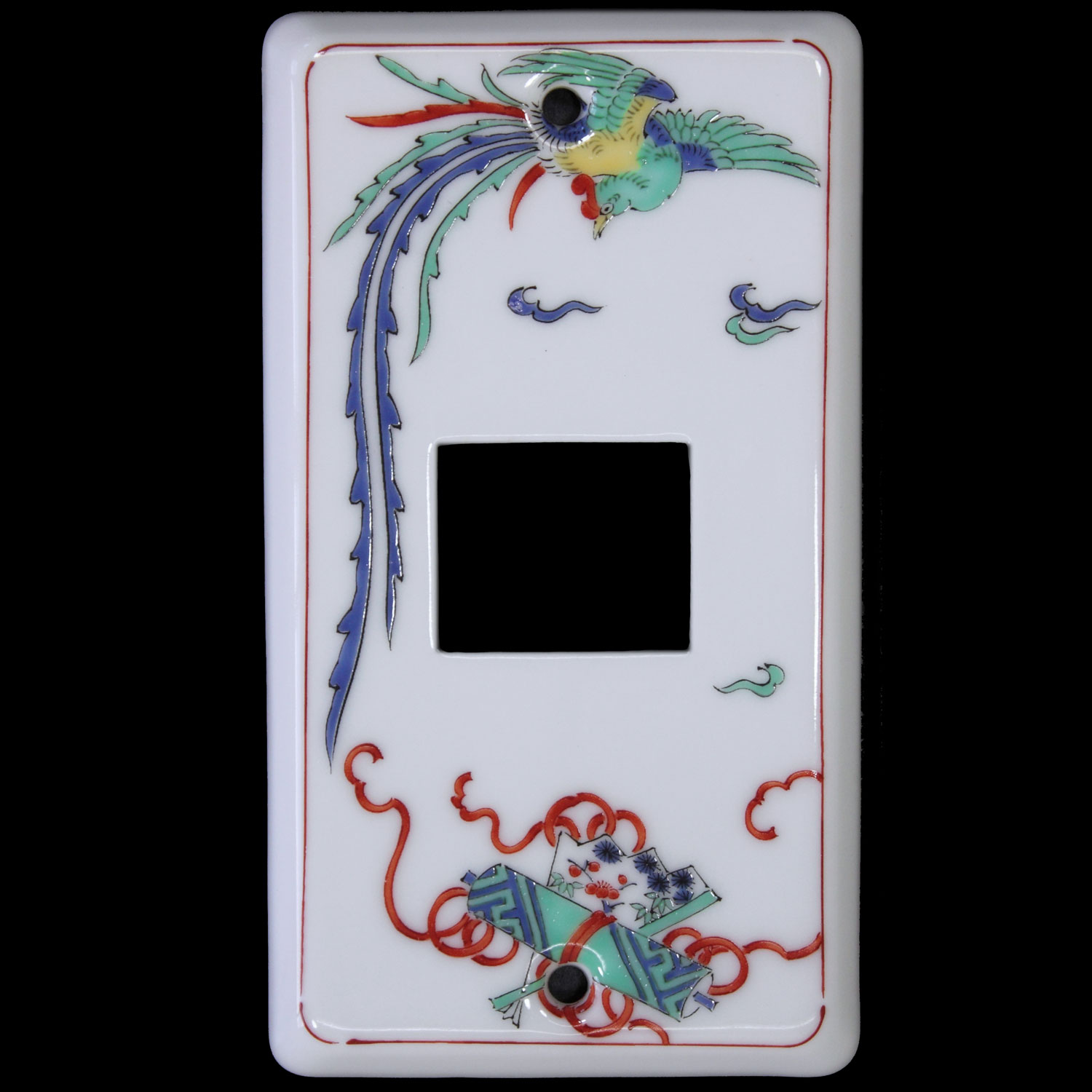 磁器のぬくもりとその絵付けの温かみが、お部屋にロマンスをもたらす有田焼のスイッチカバー(スイッチプレート)、染錦グリーン外濃みが入りとてもおしゃれなカバーです。