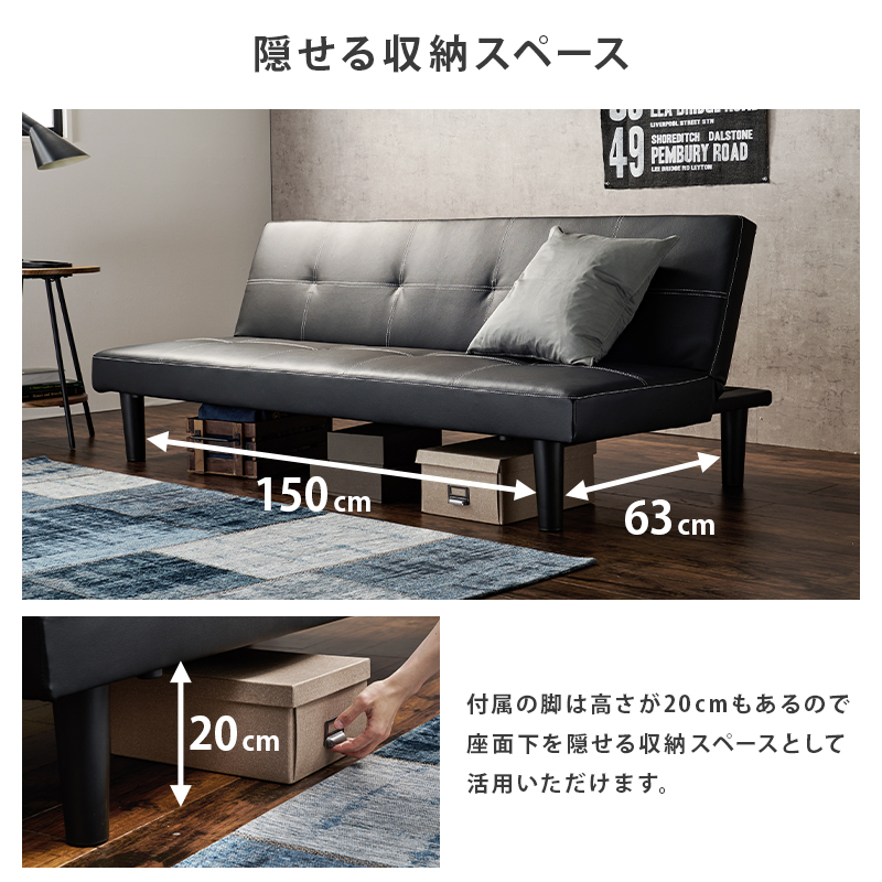 (北海道、沖縄、離島等一部地域を除く) 3人掛けも可能なゆったり幅のソファは背もたれを倒すとシングルサイズのベッドとして使用可能。