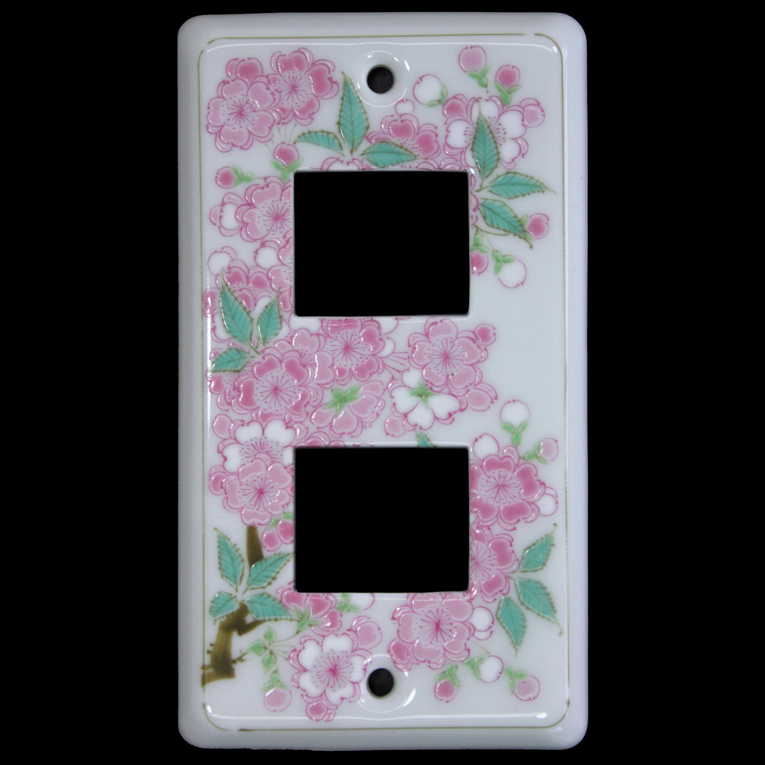 磁器のぬくもりとその絵付けの温かみが、お部屋にロマンスをもたらす有田焼のスイッチカバー(スイッチプレート)、染錦桜絵が入りとてもおしゃれなカバーです。