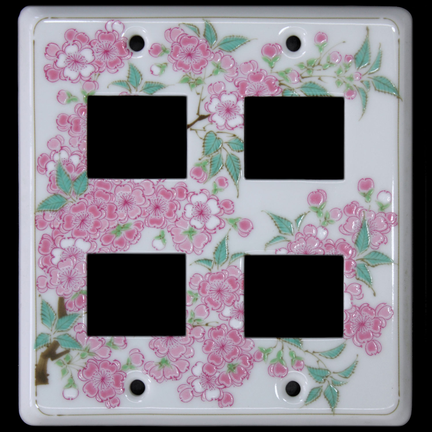 有田焼スイッチカバー(スイッチプレート) 6ッ穴 染錦桜絵