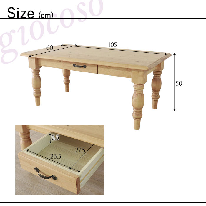 (北海道、沖縄、離島等一部地域を除く) 北欧産パイン材をふんだんに使ったクラシカルなカントリーデザインのセンターテーブルです。