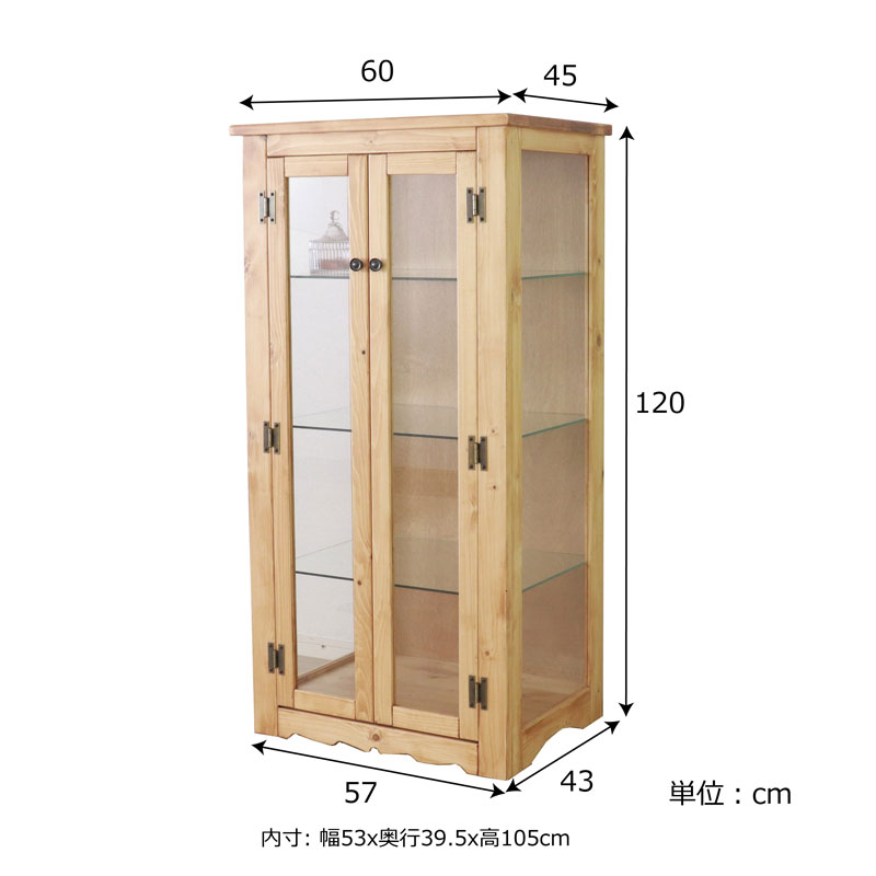 (北海道、沖縄、離島等一部地域を除く) 北欧産パイン材をふんだんに使ったクラシカルなカントリーデザインのディスプレーキャビネットです。