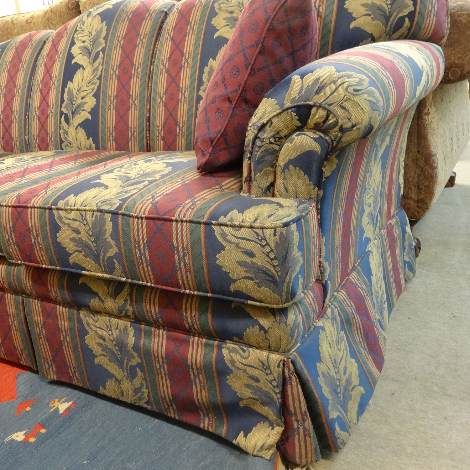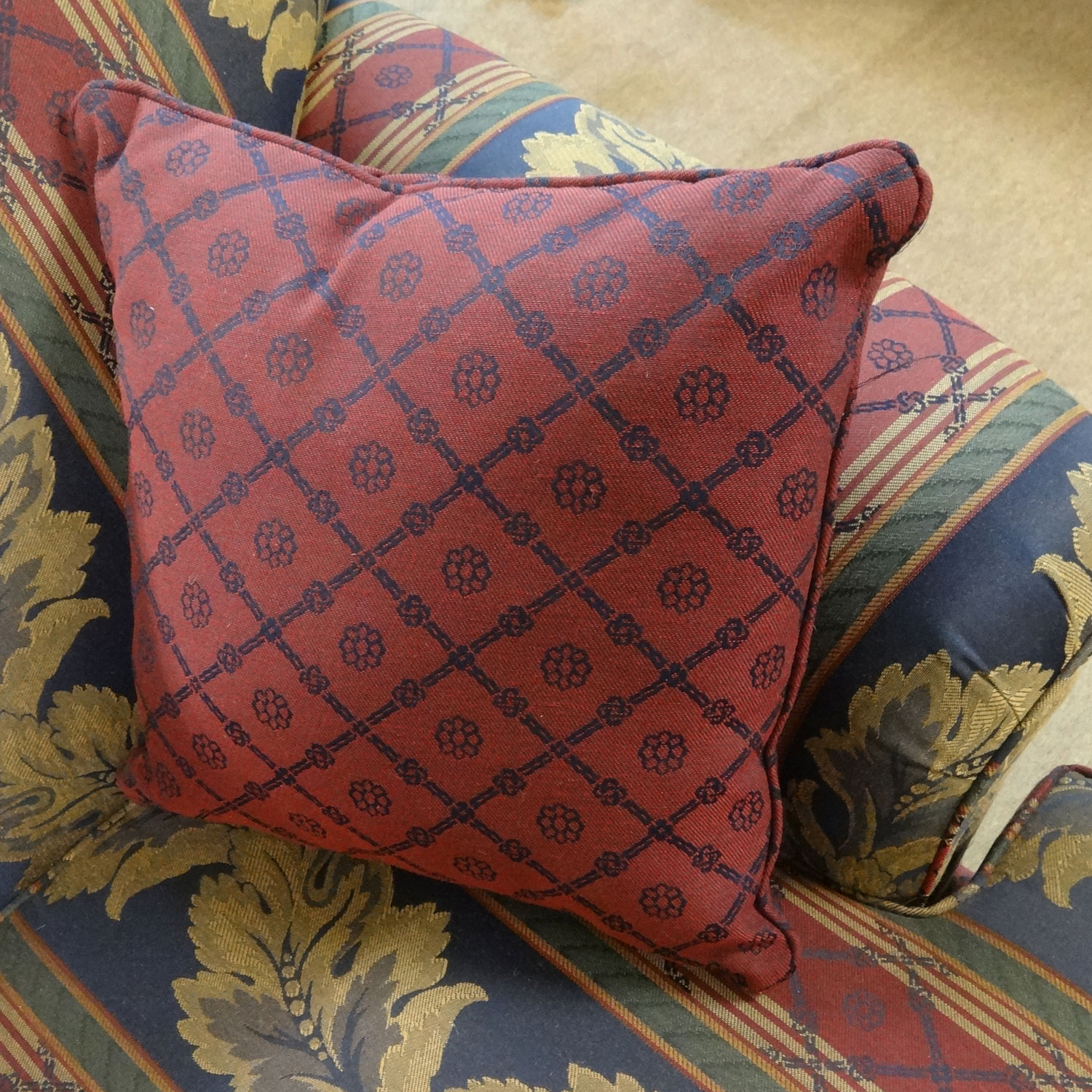 カナダ製の直輸入ソファーです。シートクッションは、ハイグレードウレタンを使用し、シートクッション下のデッキ部分はスプリング構造になっています。スプリングは、二重構造になっていて、通常のソファーの1.5倍の強度を持っています。ゴージャスなデザインのファブリックは、高級感のあるお部屋をデザインします。アンテーク家具との相性も抜群です。