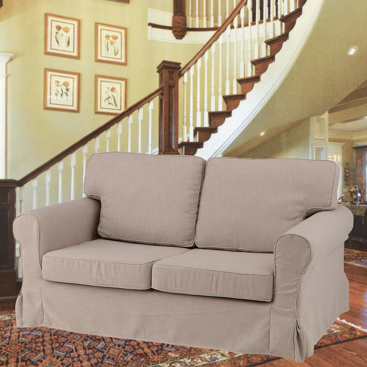 カバーリングタイプの二人掛けソファーです。優雅なデザインで、落ち着いた雰囲気のソファーで、リーズナブルな価格で人気です。※通常のお届けは、2週間以内ですが、輸入品のため国内に在庫の無い場合は、納期がかかる場合がございます。予めご了承ください。納期がかかる場合は、メールもしくは、お電話にてご連絡いたします。