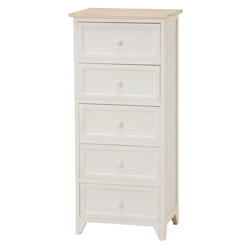 (北海道、沖縄、離島等一部地域除く)(※北海道・沖縄・離島は別途送料お見積します。ご注文前にお問い合わせ下さい。)コストパ最高シャビーホワイトの本体にアンティーク調、41cm幅×高さ93cmシンプルチェスト。
