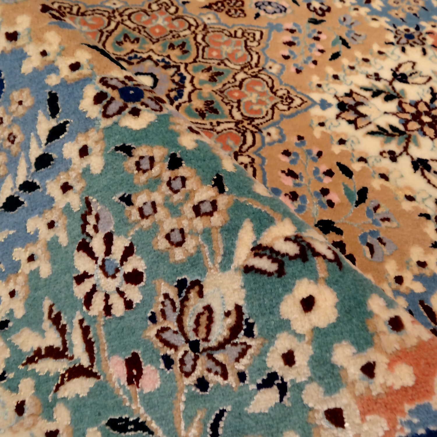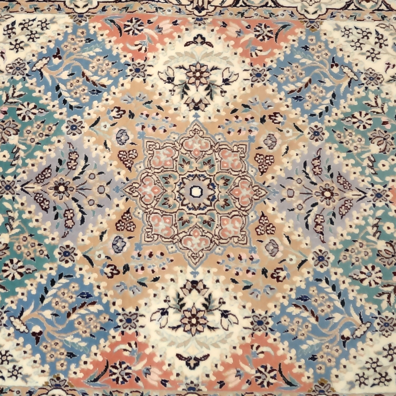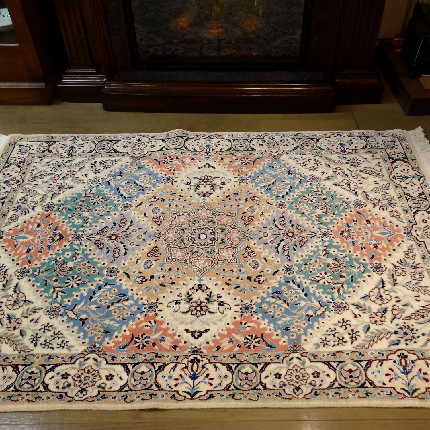 ペルシャ絨毯・ナインの中でもデザイン、きめの細かさなど、なかなか見つけることができない貴重なナイン産の手織り絨毯。