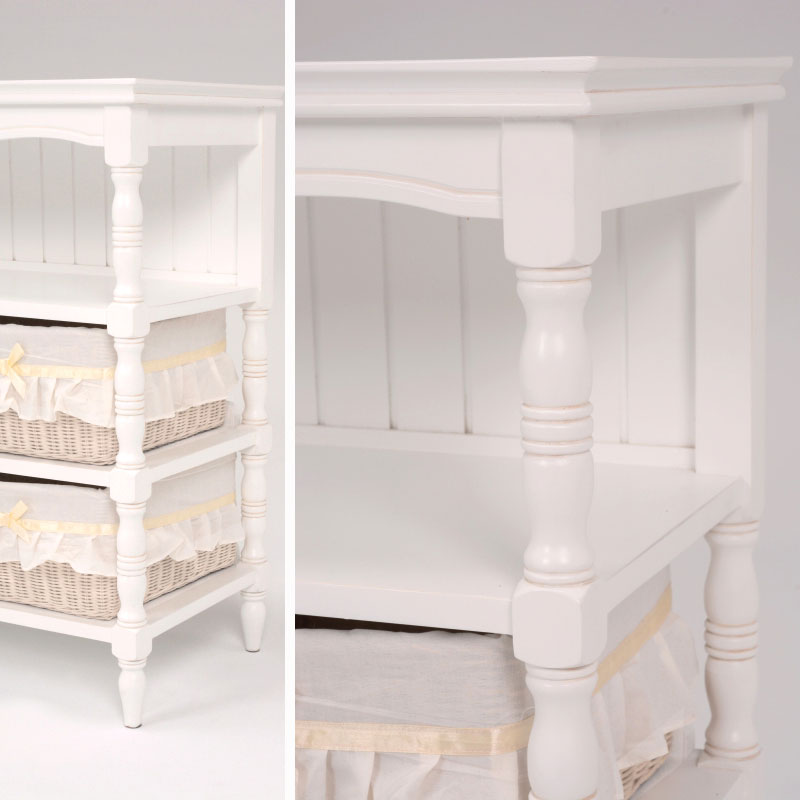 小物が収納できる内布付きバスケット6つ付き。