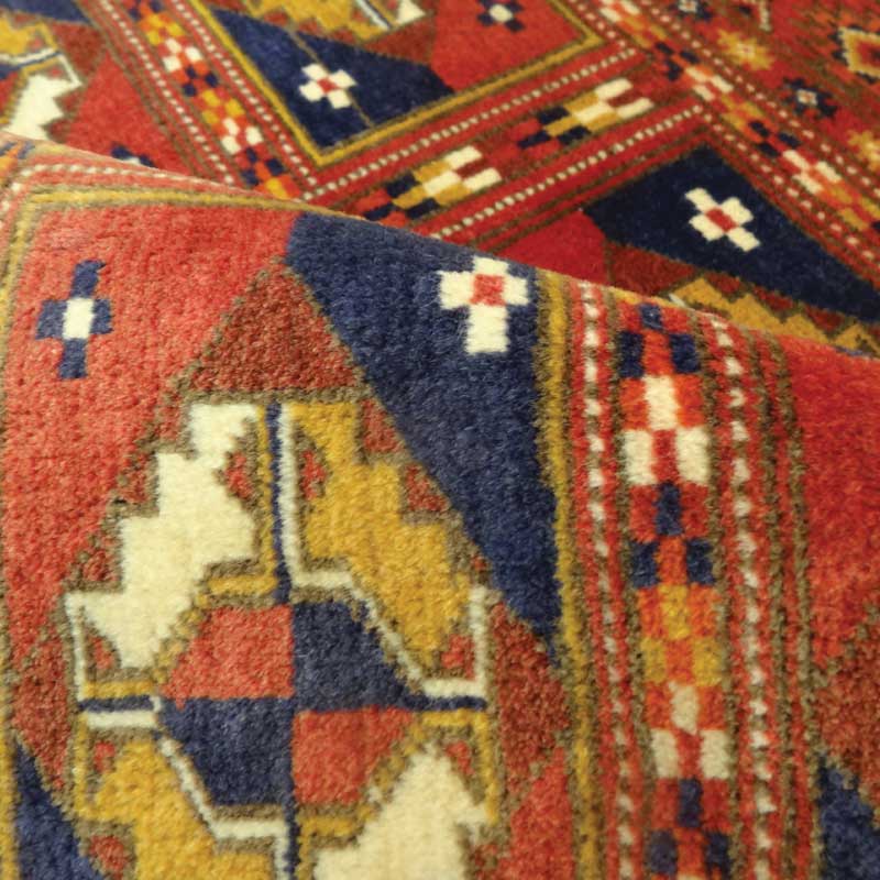 誇り高き騎馬民族として知られるトルクメン族が、約30年前に手織りしたオールド絨毯です。