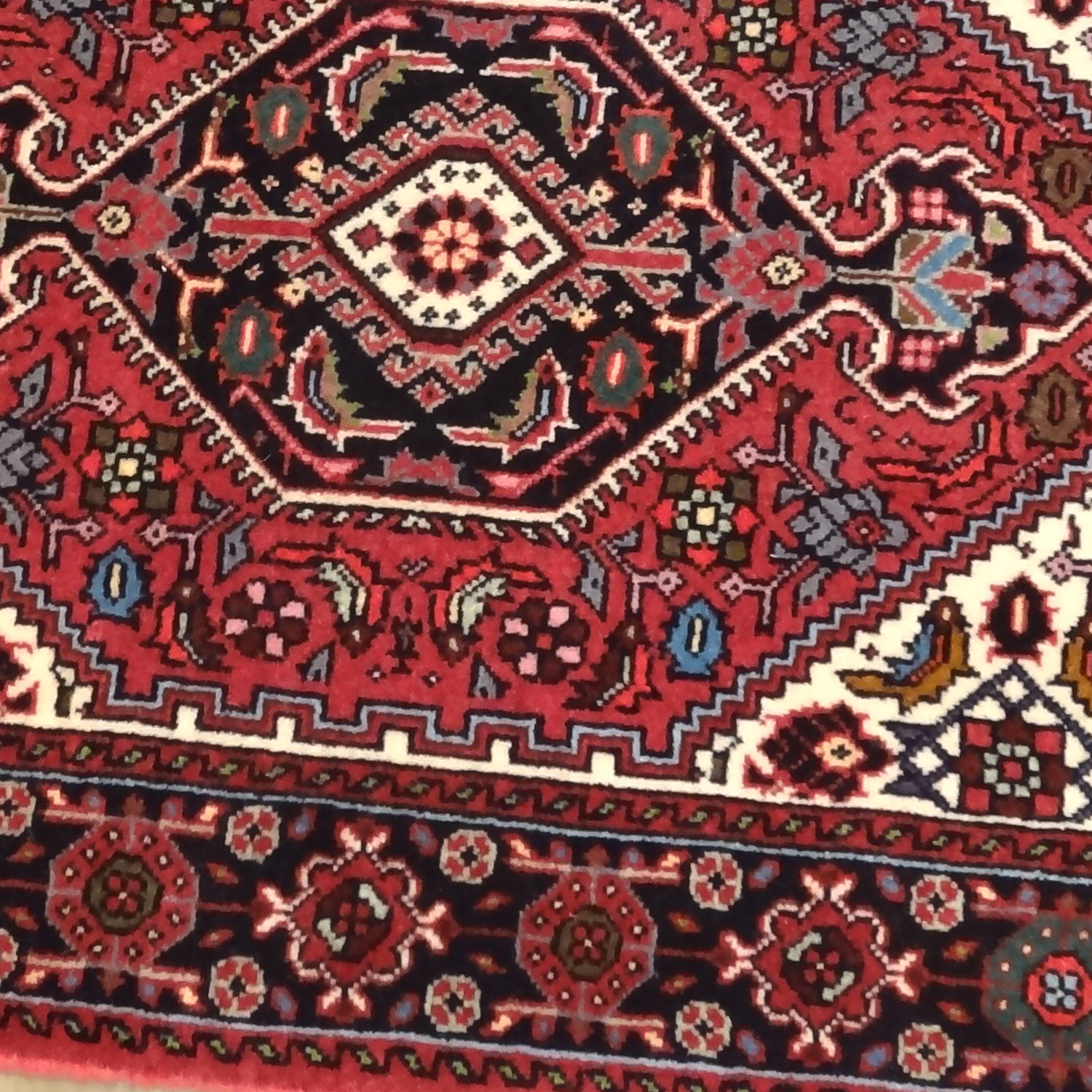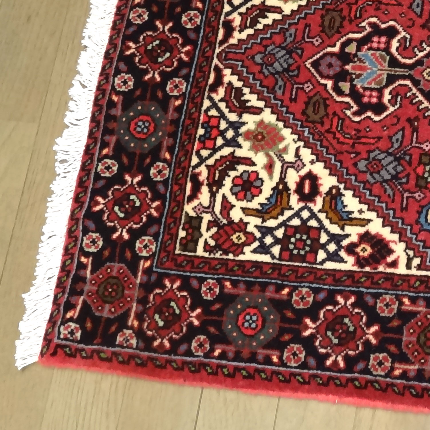 ペルシャ絨毯・ザンジャン、こちらの絨毯は、マラゲと同様にコム産のシルク絨毯を手本に作られていますが、ザンジャン産のほうがマラゲより緻密で丈夫な絨毯です。クラシックな伝統的な柄で、価格もリーズナブルで人気の手織り絨毯です。サイズとしては、玄関フロアーにベストマッチ。