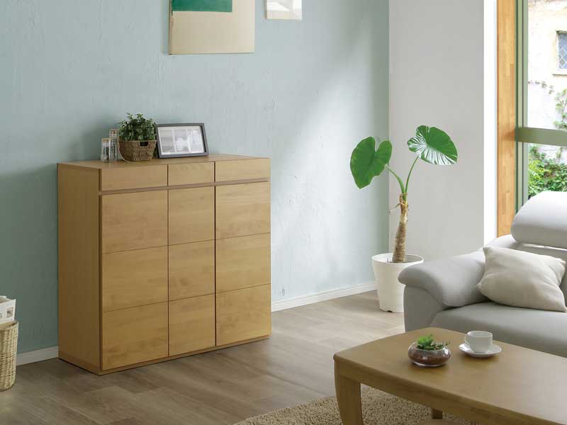 87cm幅ロータイプのシューズボックス(下駄箱) ゴールド87LNA ナチュラル色