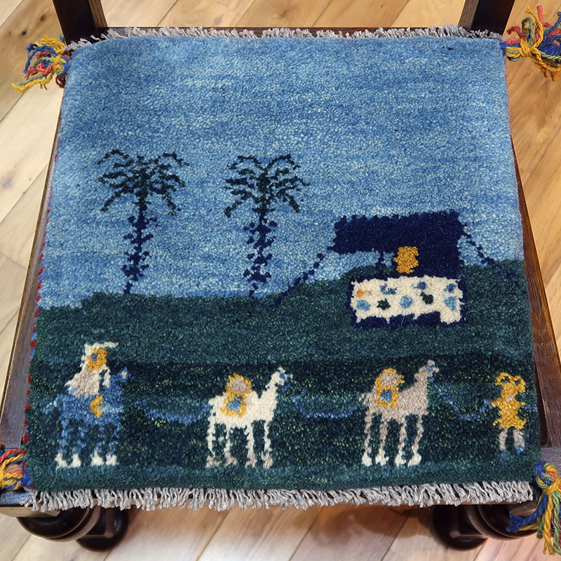 ペルシャ絨毯の中でも毛足が長いギャッベ(ギャベ)AB-T859。こちらのサイズは、ミニ座布団サイズで、ダイニングチェアや車のシートの上に敷いてお使いいただけるふかふかのギャッベ(ギャベ)絨毯です。