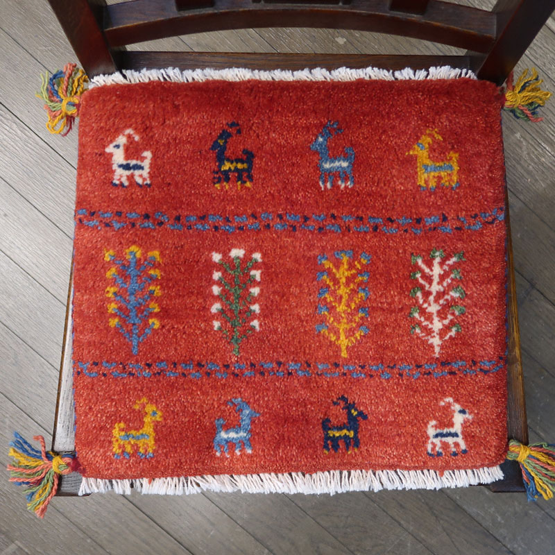 こちらのサイズは、ミニ座布団サイズで、ダイニングチェアや車のシートの上に敷いてお使いいただけるふかふかのギャッベ(ギャベ)絨毯です。