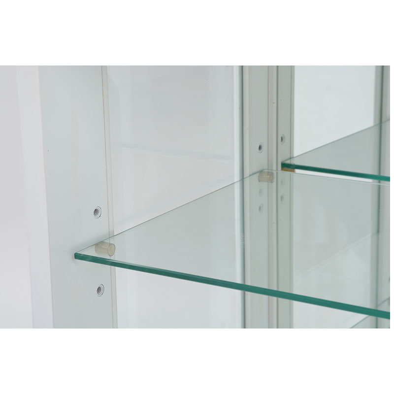 ガラス棚を使用し、棚受けもネジ式で安心仕様。