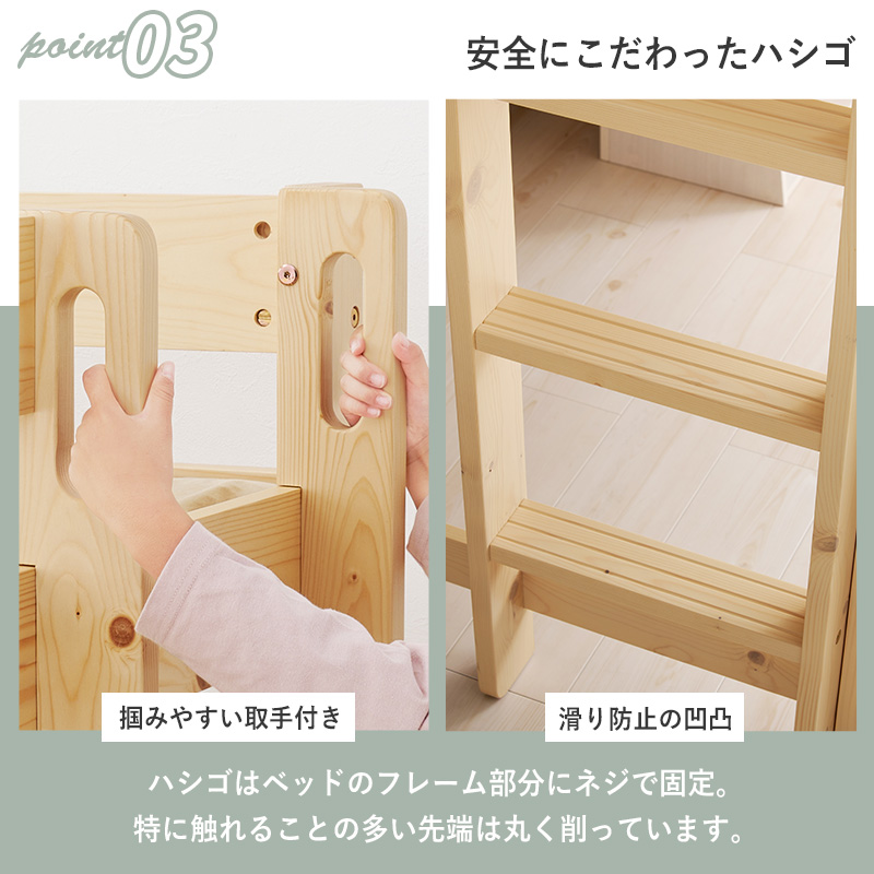 床面下の収納も使いやすい省スペースな垂直のハシゴタイプです。
