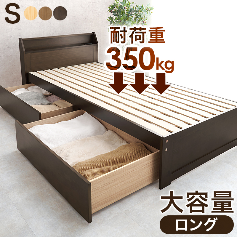 大容量の引出し付き宮付きすのこシングルベッド 3色対応 送料無料