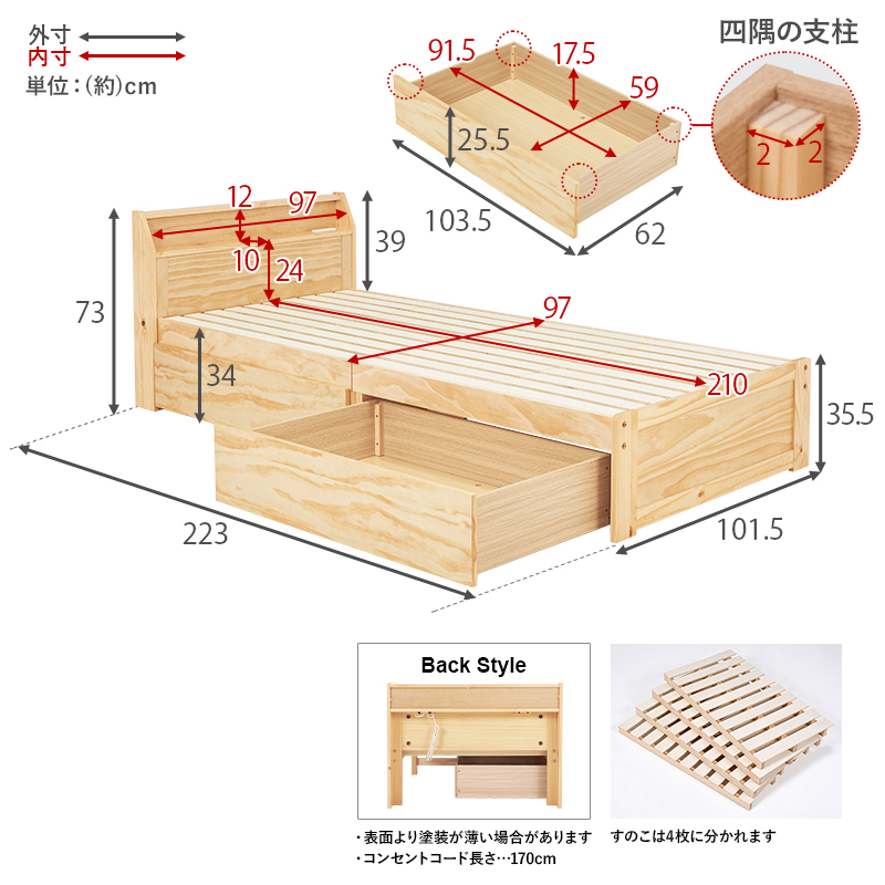 - 主材:天然木(パイン材)