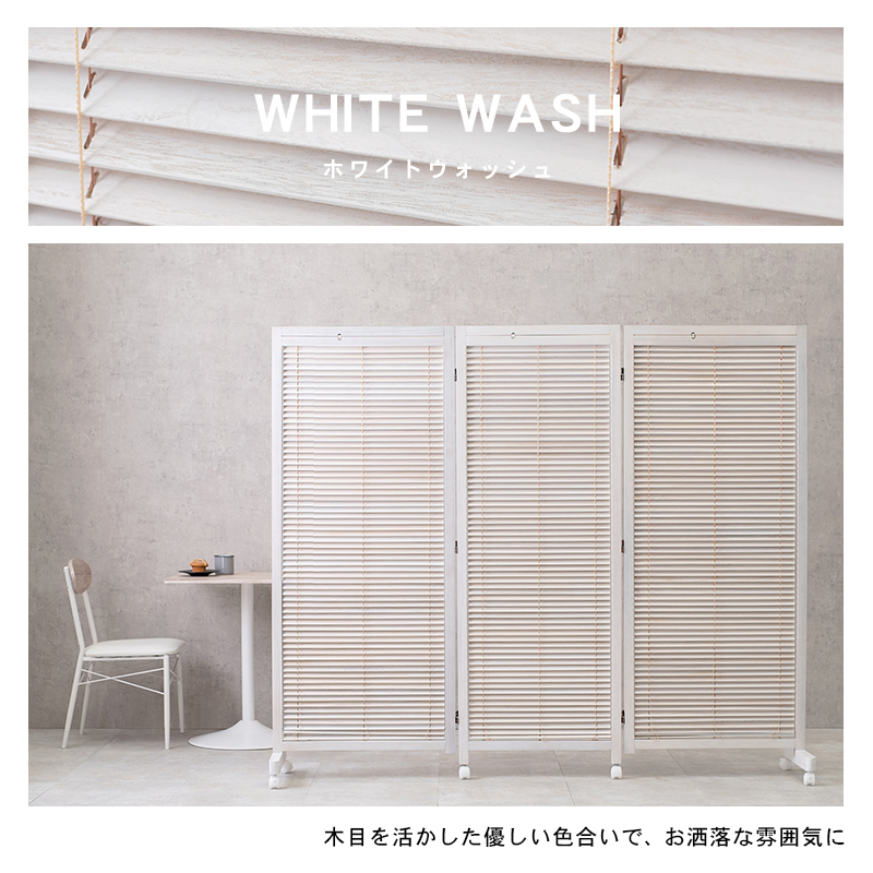 お部屋の仕切りや目隠しに最適なパーパーテーション。色合いは、落ち着きのあるホワイトウォッシュ色。