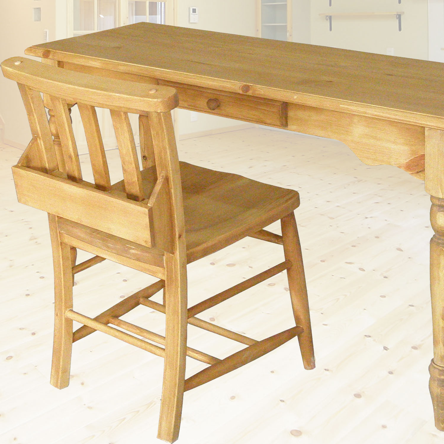 味わい深いパイン無垢材の家具です。