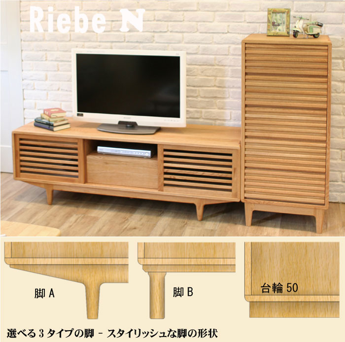 リーベNシリーズは、国内デザイナーがデザインし、国内優良メーカーが、海外工場で生産したコストパフォーマンスにも優れた高級家具シリーズ。高級なナラ材を使用し、引出内装には桐材を使用した間口150幅のテレビボード(脚Aタイプ)です。オイル仕上げされたナラ材の家具は、肌触りもしっとりして木の温もりを感じます。
