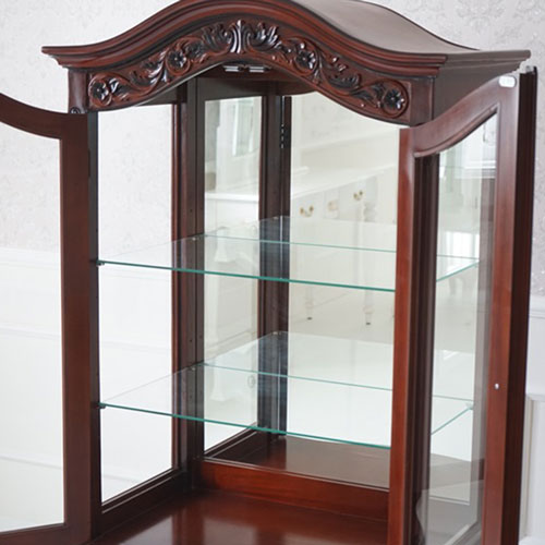 (北海道、沖縄、離島等一部地域を除く) アンティーク調のガラス キャビネット BRは、重厚な本物のマホガニー家具を今にしっとりと溶け込むアンティークデザインに仕上げた近代的なアンティークエレガント家具です。