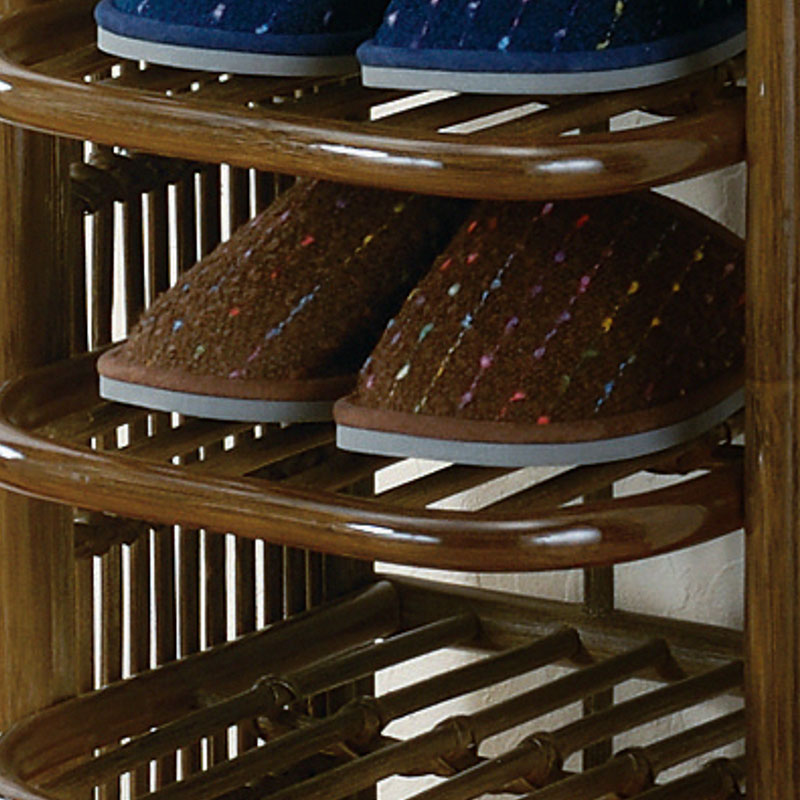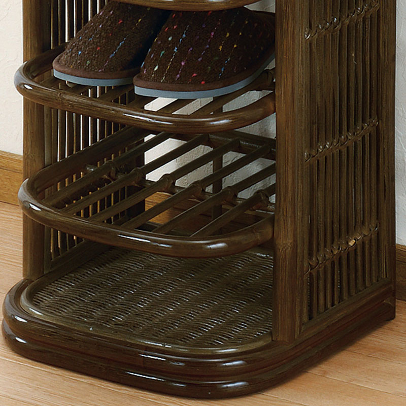 ダークブラウン色のシックな7段のラタンスリッパラック ラタン・籐家具