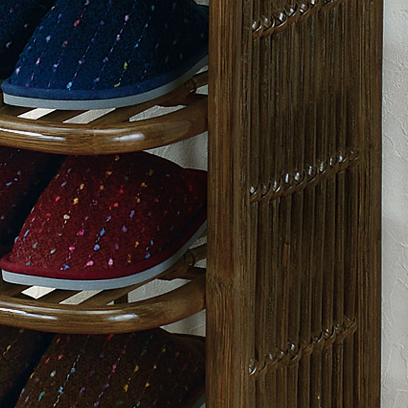 ダークブラウン色のシックな5段のラタンスリッパラック ラタン・籐家具