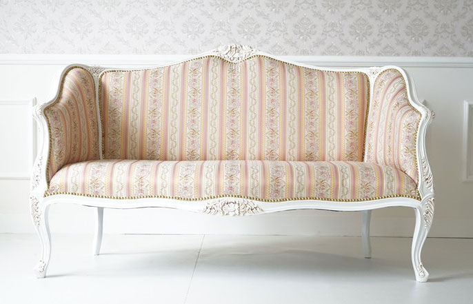 曲線と彫刻が魅力の猫脚ホワイト2Pソファー トリノ サヴォイア シリーズ