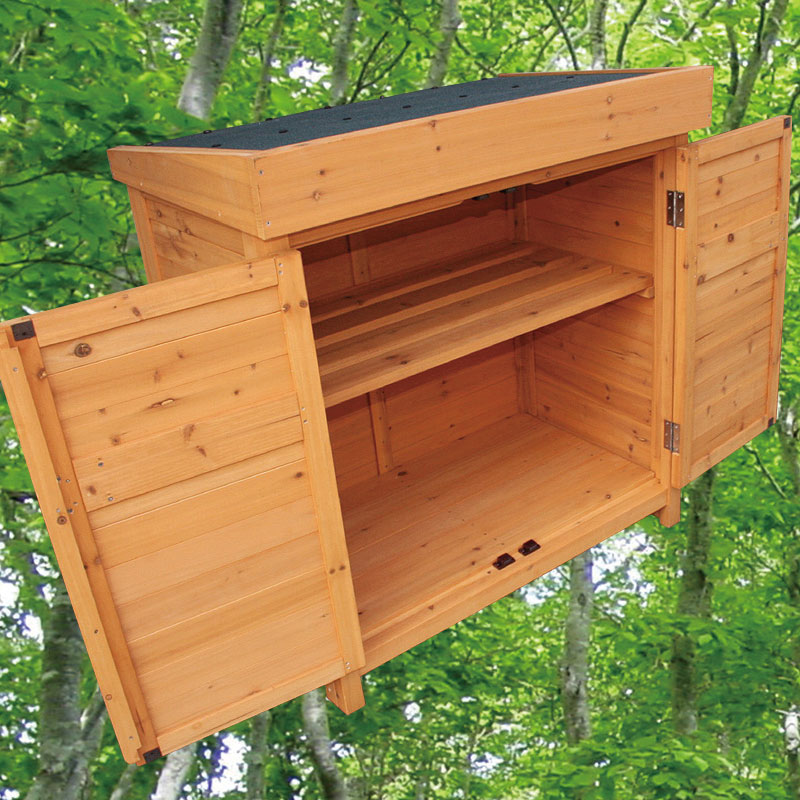 桧の香り、ぬくもりが心地良い木製物置。小型収納庫