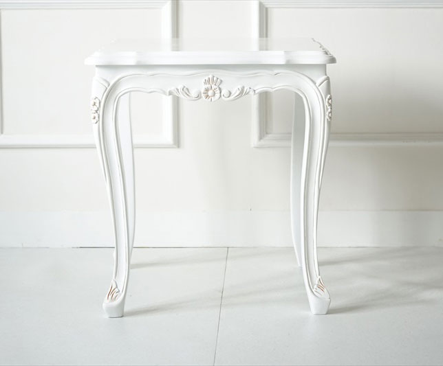 アンティーク調の白色の53cm幅猫脚カフェテーブル トリノ サヴォイア シリーズ