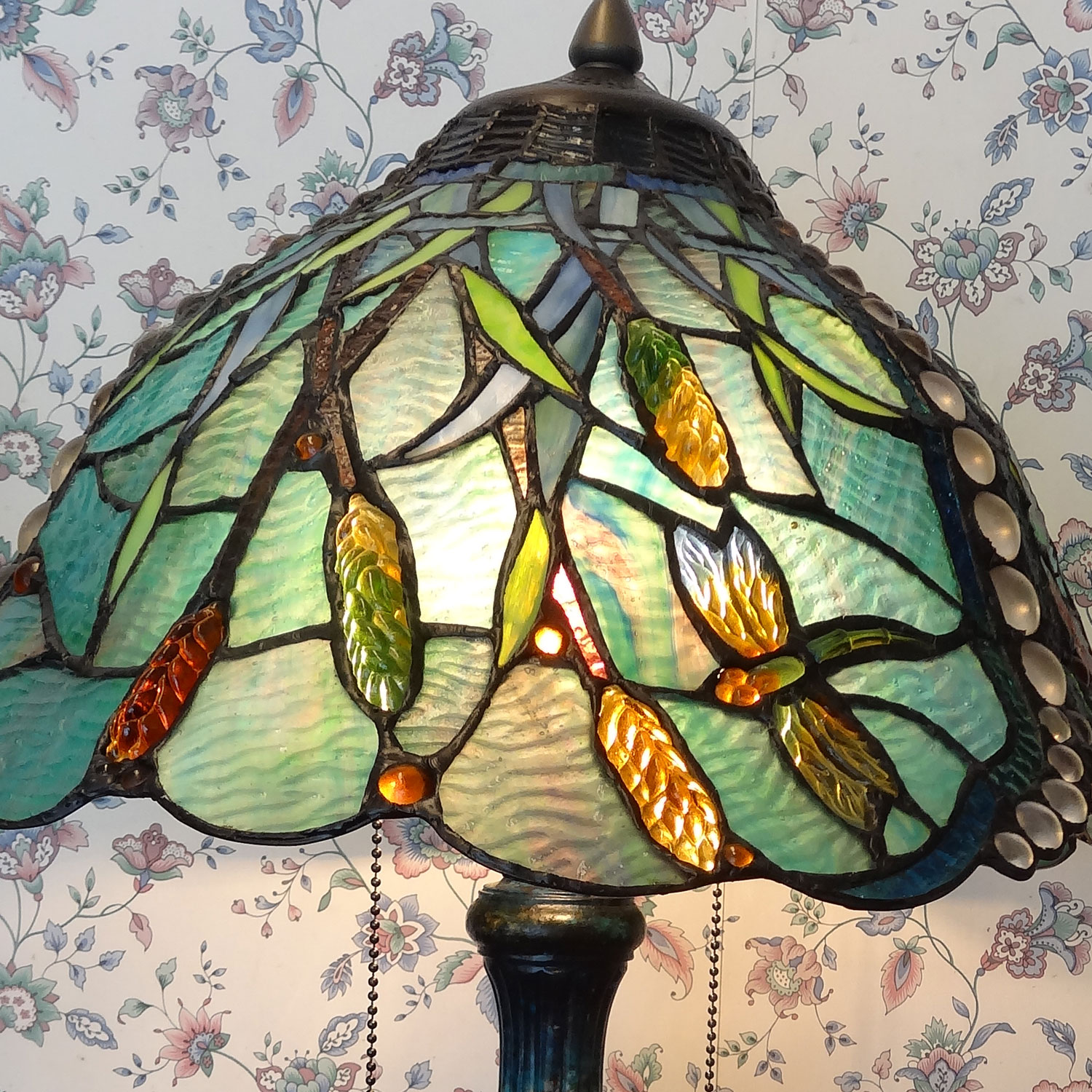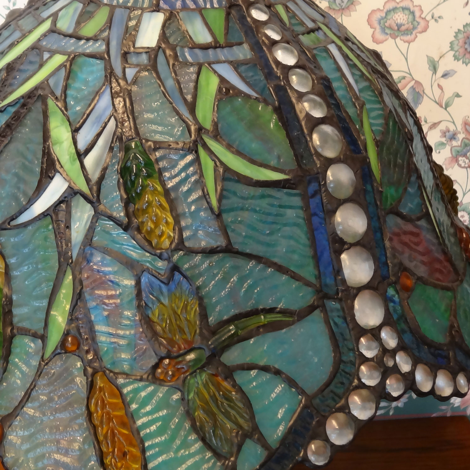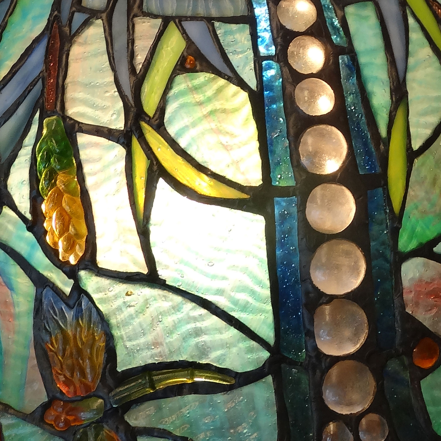 古来よりアメリカで作られていた波打ったガラスも使われていて、ティファニーランプの時代を反映された作品となっています。