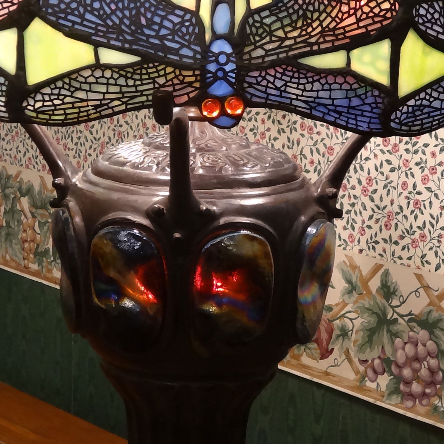 古来よりアメリカで作られていたUROBOROSの波打ったガラスも使われていて、ティファニーランプのレプリカとしても精巧にできています。