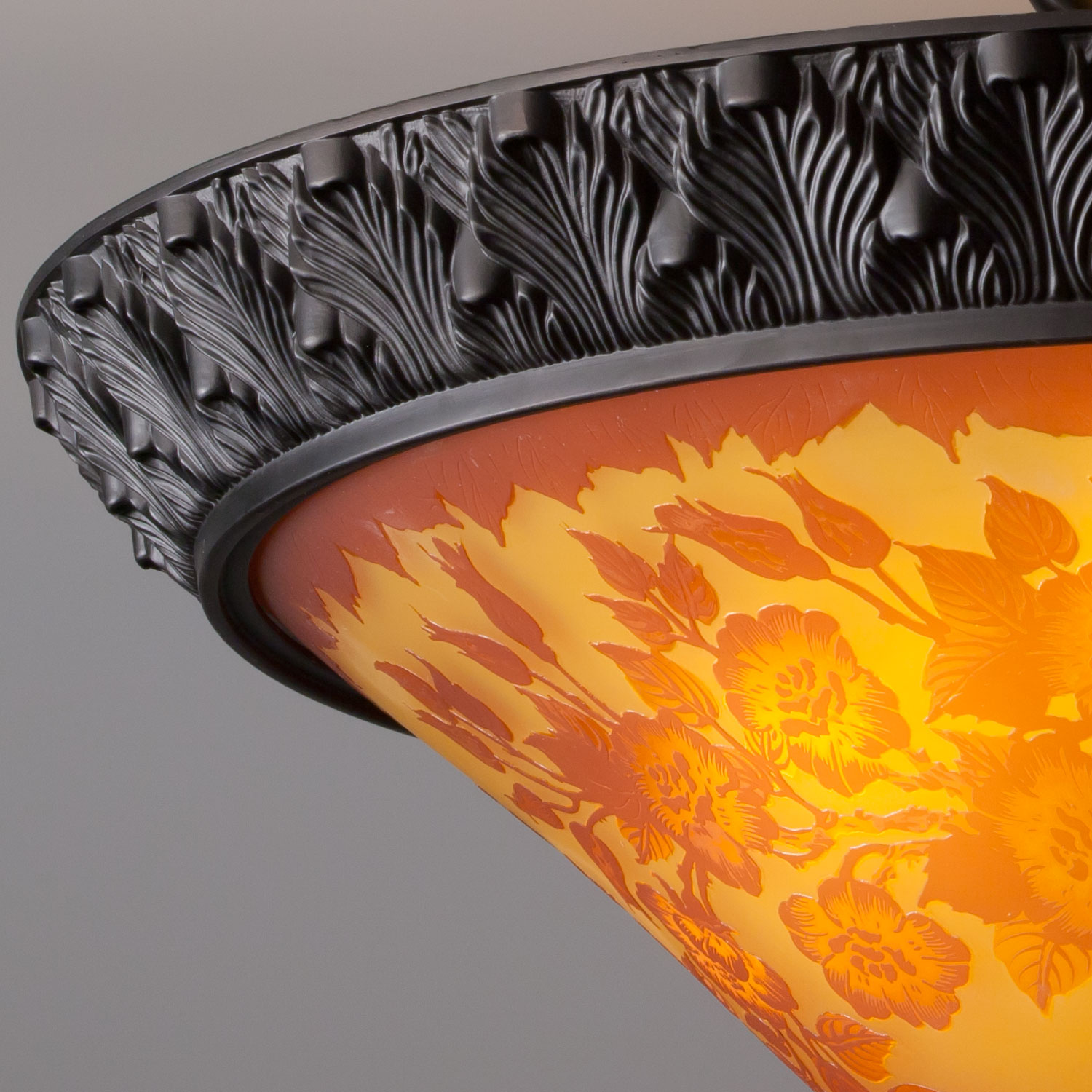 ガレコレクションの赤薔薇をモチーフにした超豪華な6灯シーリング照明。ガレコレクションは、繊細な色彩と情緒豊かなモチーフ、そして豊かな工芸技術で時代を彩った、エミール・ガレのガラス工芸品を現代に蘇らせたシリーズです。